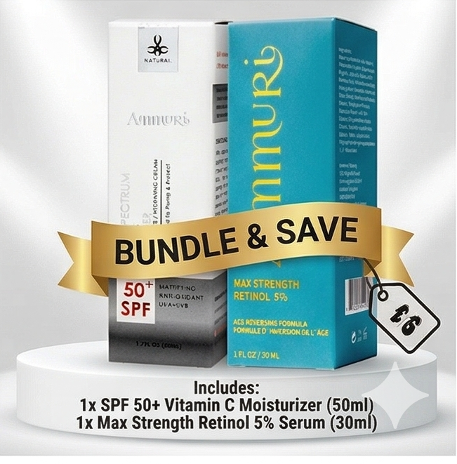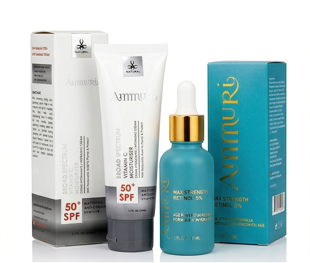 Achieve smoother, healthier-looking skin with the Ammuri Retinol & SPF 50 Skincare Duo, a simple yet powerful routine designed to support skin renewal, hydration, and daily protection.
